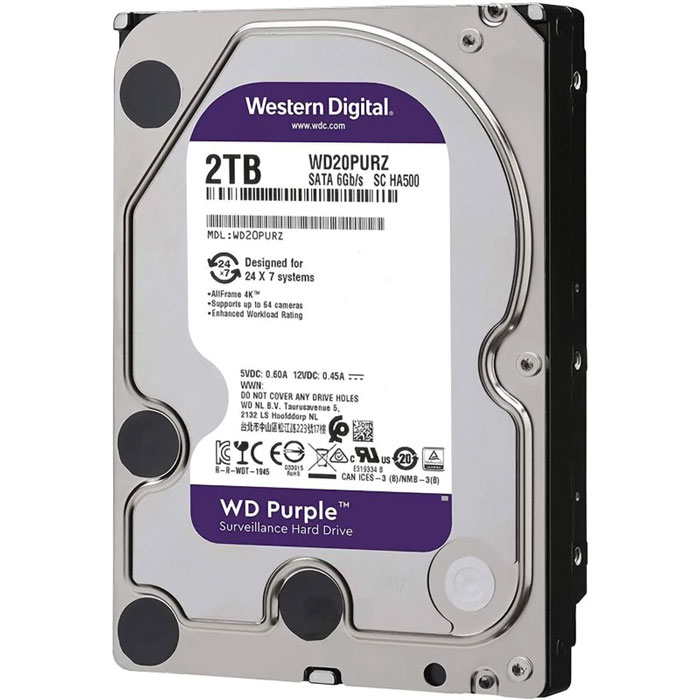 برای استفاده از سیستمهای امنیتی،به هاردهای اینترنال با سرعت و ظرفیت زیاد نیاز است تا دادهها را بدن هیچ خللی در خود ذخیره کند.هارددیسک اینترنال »WD20PURZ» از تولیدات شرکت «وسترن دیجیتال» (Western Digital) است. این مدل در خانوادهی بنفش (Purple) سازنده جای میگیرد و برای استفاده از سیستمهای حفاظتی ساخته شده است. در سیستمهای حفاظتی و DVRها به هارددیسکی با توانایی ذخیرهی پیوستهی دادهها نیاز است و باید بتواند هر روز، حجم زیادی از دادهها را ذخیره کند. در WD20PURZ سازوکاری وجود دارد که امکان نوشتهشدن بیوقفهی اطلاعات را فراهم میکند. این مدل میتواند خروجی 64 دوربین نظارتی را به صورت همزمان روی خود ضبط کند که استفاده از آن را در سیستمهای مداربسته ایدئال میکند. ظرفیت هارددیسک 2 ترابایت و سرعت چرخش پلاترهای آن 5400 دور بر دقیقه است. 64 مگابایت حافظهی کش برای ذخیرهسازی در نظر گرفته شده است تا احتمال ازبینرفتن دادهها هنگام ذخیرهشدن به صفر برسد. به دلیل کیفیت ساخت خوب هارددیسک WD20PURZ، سازنده اعلام کرده است که میتوان سالانه تا 180 ترابایت داده را بدون هیچ مشکلی روی آن نوشت. WD20PURZ در فرم فاکتور 3.5اینچی ساخته شده است و برای نصب، به چنین فضایی نیاز دارد. اینترفیس ذخیرهسازی، رابط آشنای SATA 3.0 است و میتواند در بهترین حالت خود، به سرعت انتقال 6 گیگابیت بر ثانیه برسد.